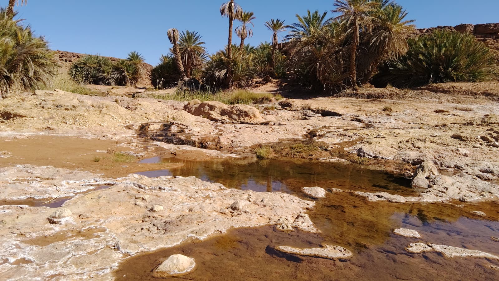 Pour la suite du programme nous avons été nous mettre au frais dans une oasis puis nous sommes aller dire bonjour à Mohammed qui possède une impressionnante collection de fossiles.