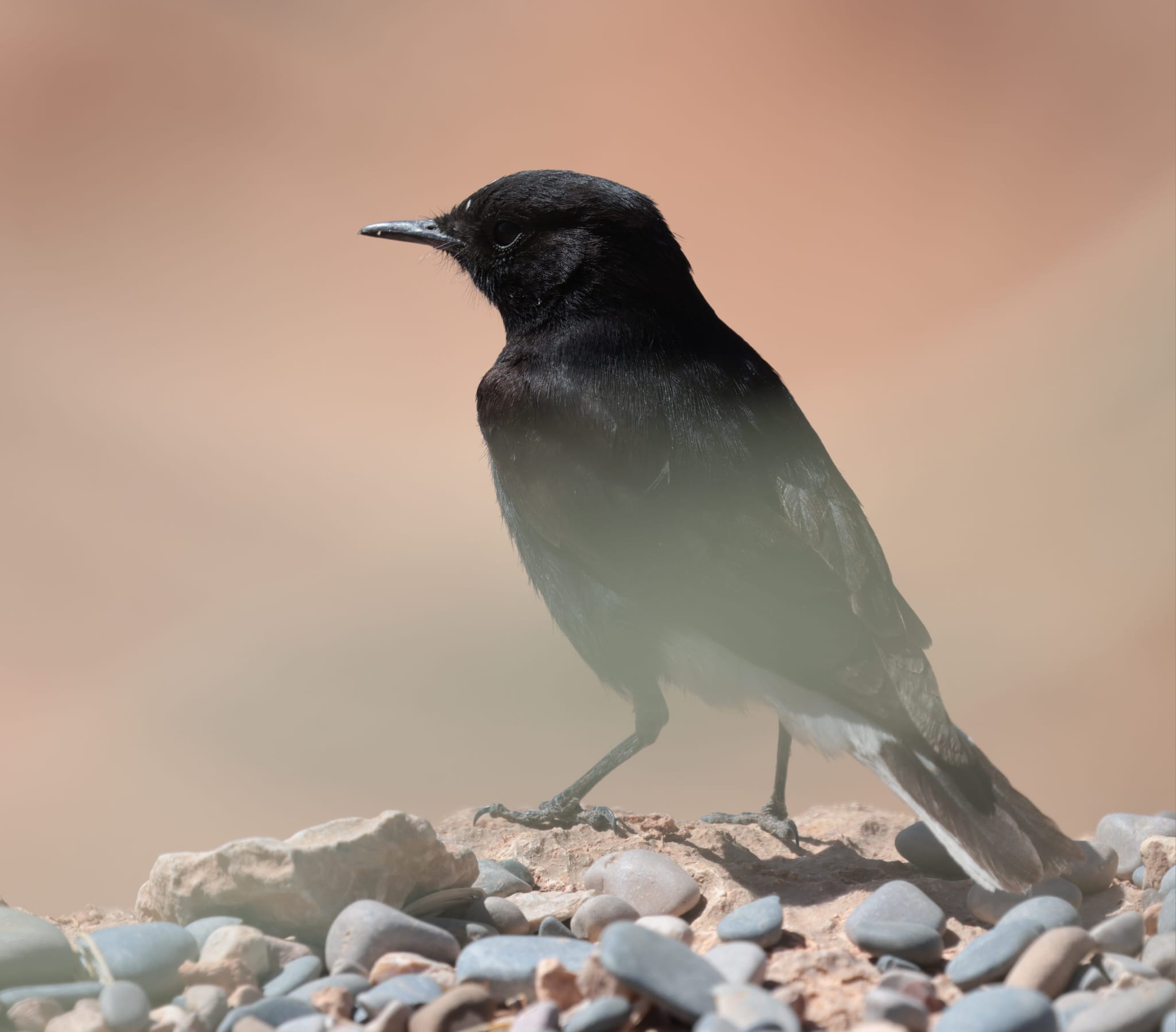 Sur la route, nous nous sommes arrêtés sur les plateaux pour observer la vue de l’oasis qui est dans l’oued. C’est une des plus grande au monde ! Nous avons pu y voir un jeune traquet à tête blanche dans le plumage de sa première année et un cochevis huppé, un oiseau qui marche très vite.