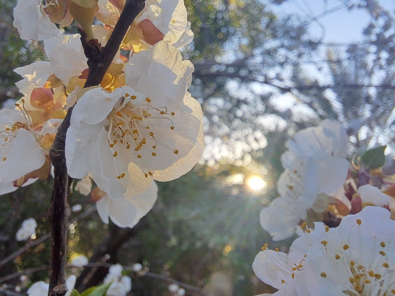 Nous sommes ensuite partis pour voir la palmeraie de Merzouga, plantée au pied des grandes dunes de sable aux teintes rouges. Les conditions y sont favorables pour l’épanouissement des arbres fruitiers dont certains étaient déjà en fleur, annonçant le printemps, tout comme le merle que nous avions entendu.