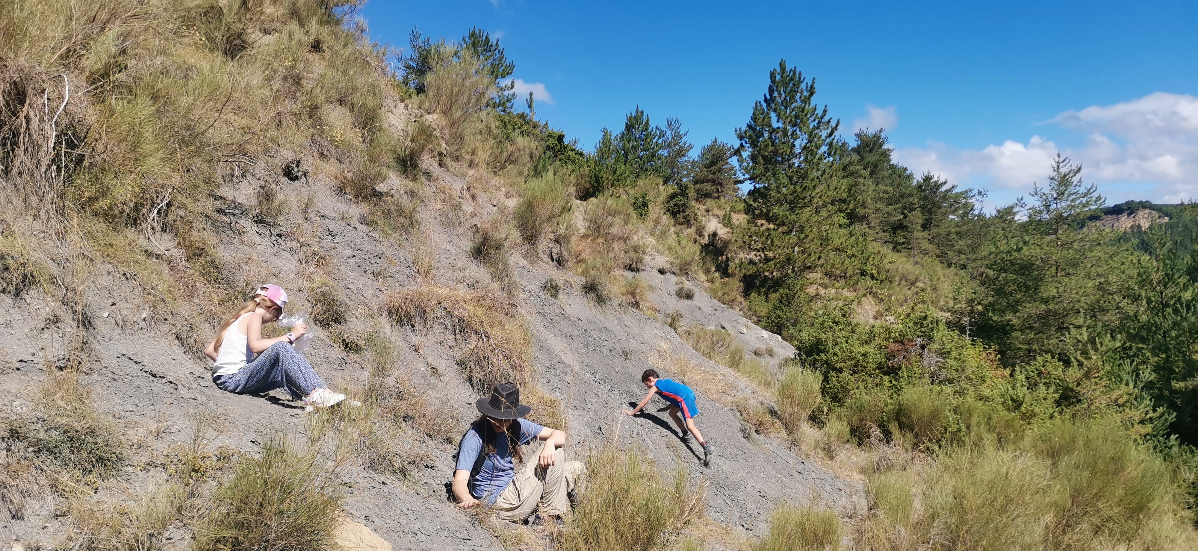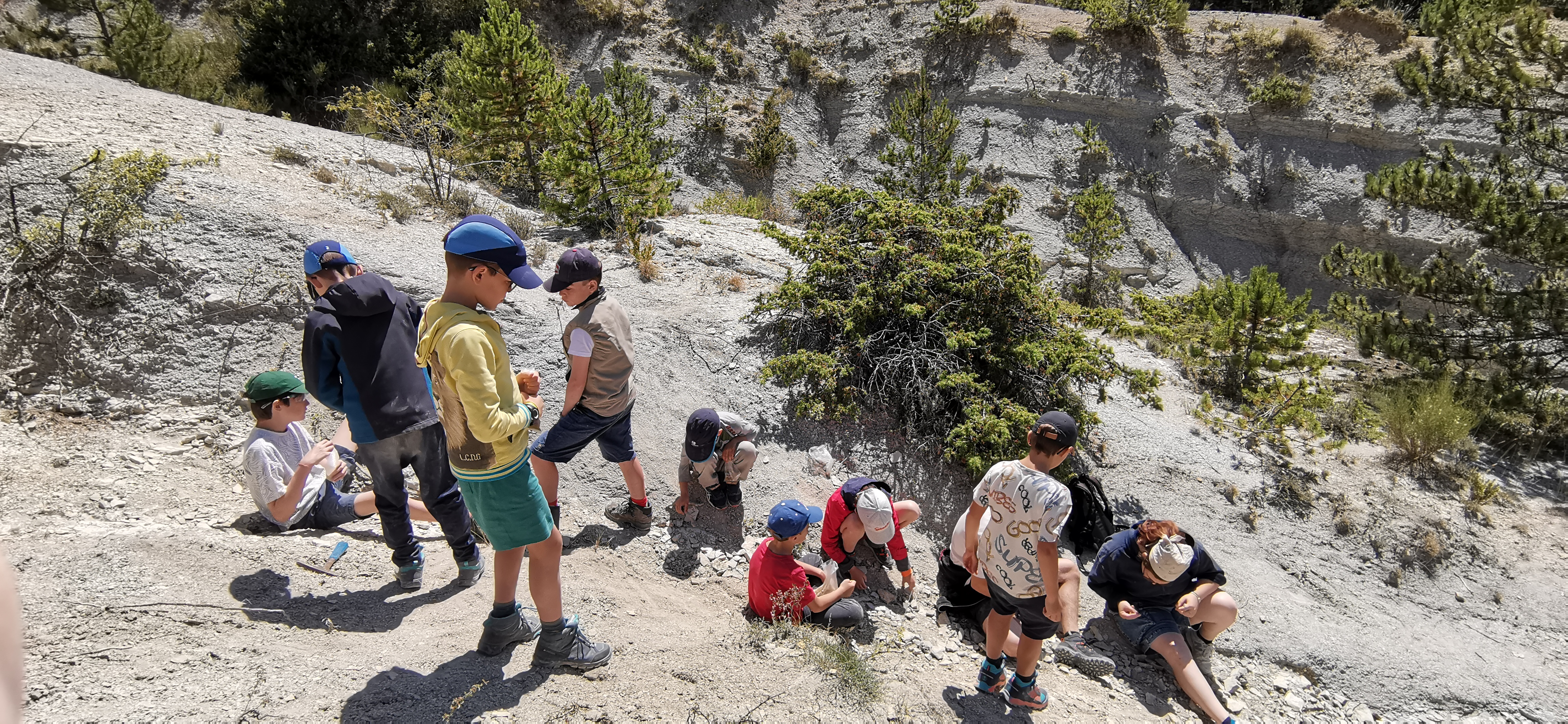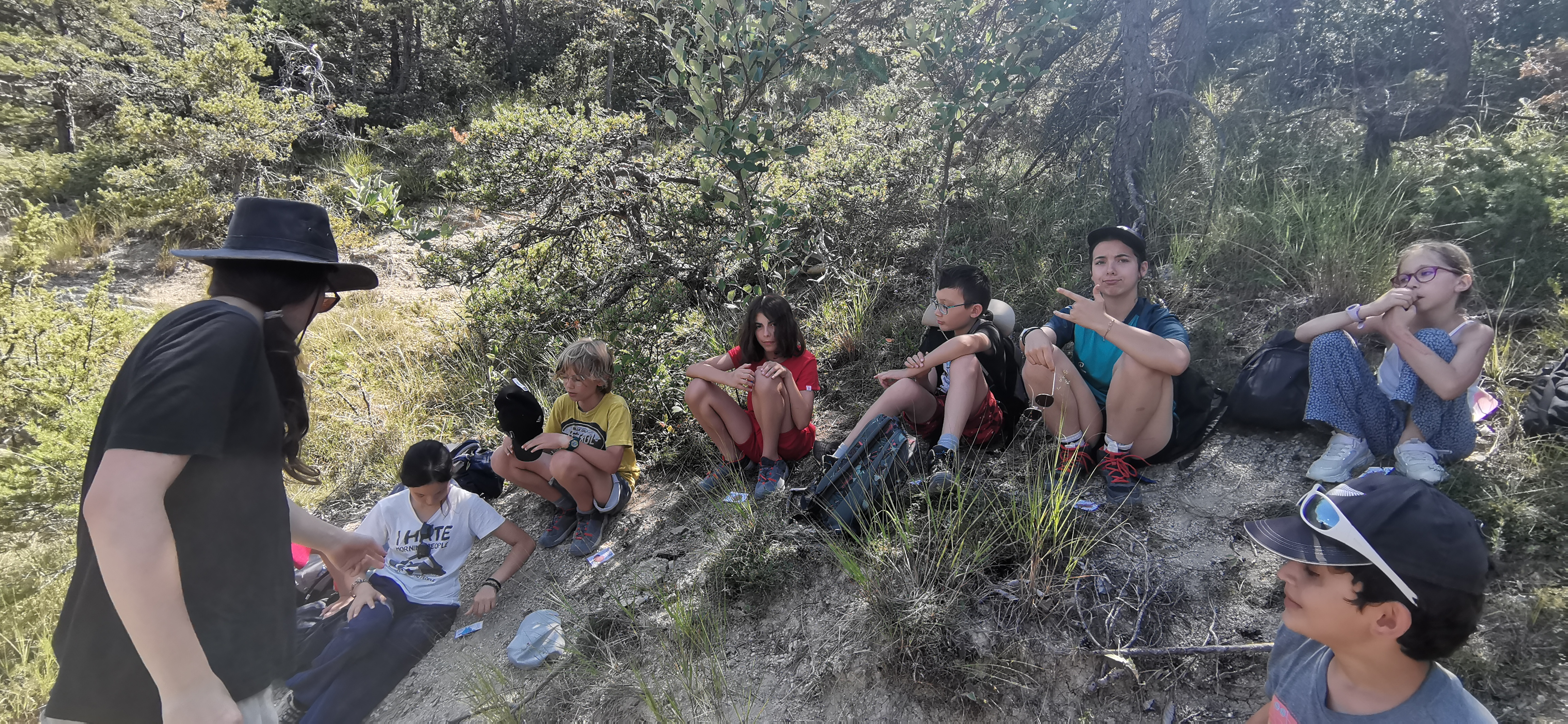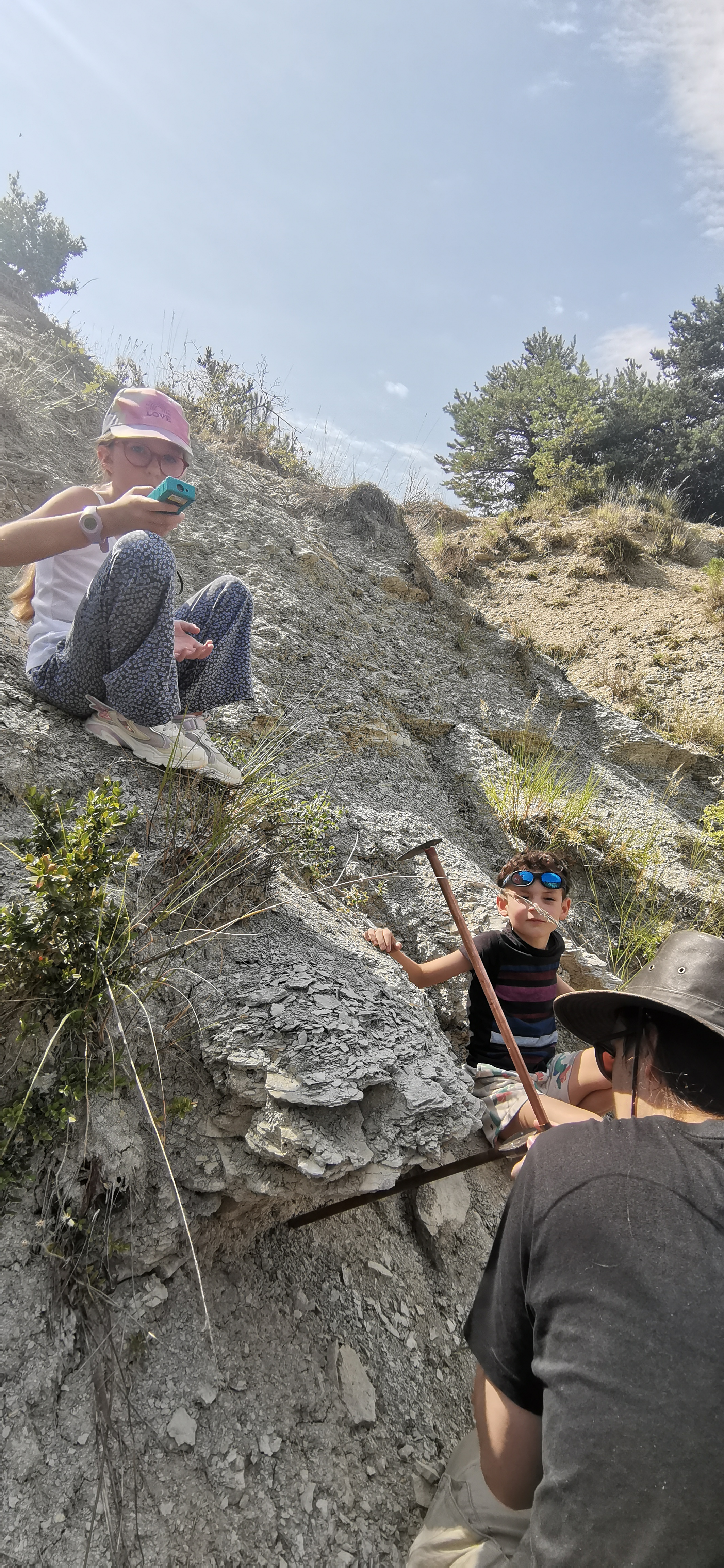 L’après midi, les animateurs Jimmy et Alexandre ont commencé par présenter le protocole de recherche de cette année, les enfants vont rechercher des fossiles dans des couches de marne précises proche des couches calcaire de référence de la Tétrade. Les fossiles récupérés seront identifiés demain afin de faire un inventaire de la faune de ces couches.Pour la fin de cette sortie, nous avons voyagé jusqu’au col du portail où les ammonites sont présentes en abondance, suite à cette journée épuisante, nous nous sommes assis à l’ombre pour organiser un jeu de loup garou avec un thème préhistorique avant de rentrer au centre de Musiflore.