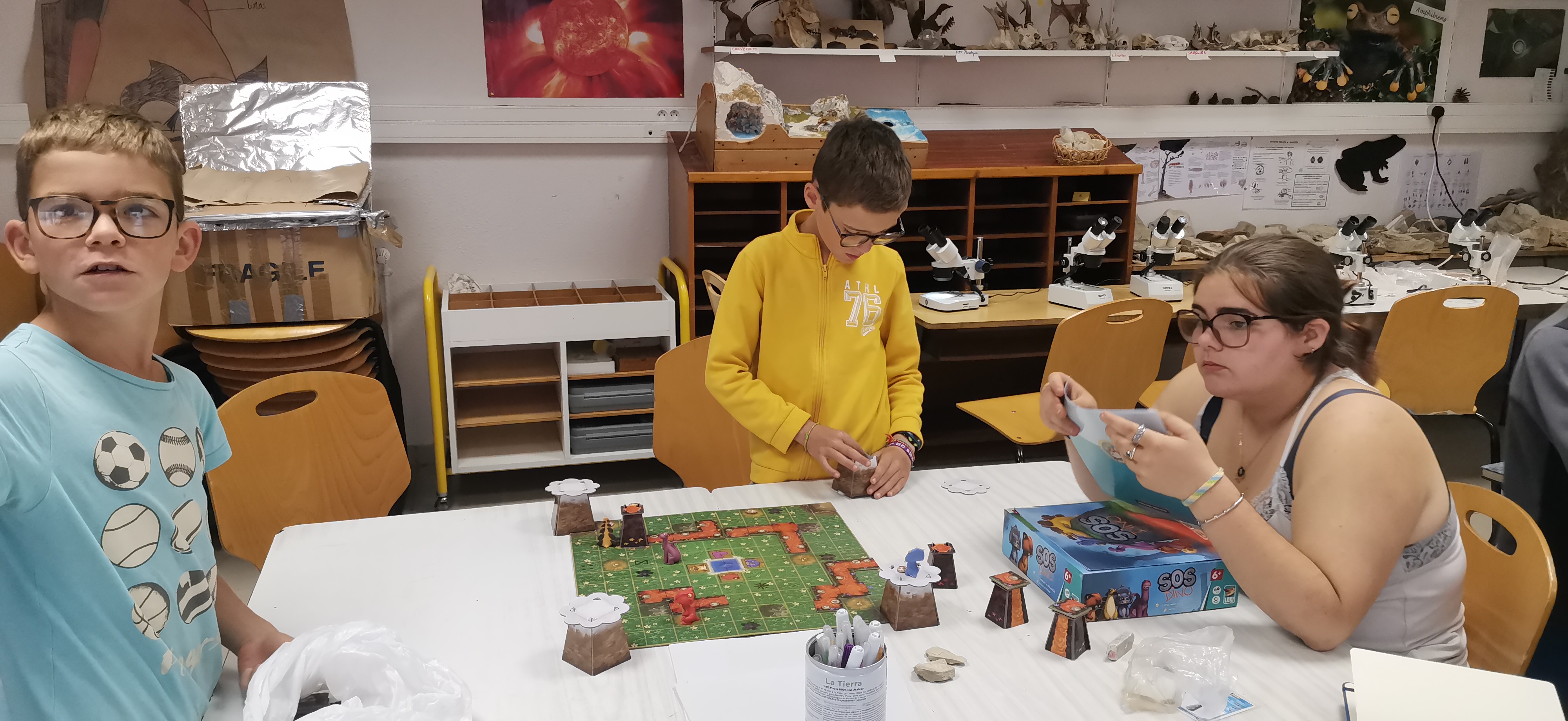 Ce soir, les enfants vont pouvoir participer à une veillée jeux de société avec un thème taverne médiévale avant d’aller se coucher après cette grosse journée pleine de découvertes. Demain, nous étudierons tous les fossiles au labo !