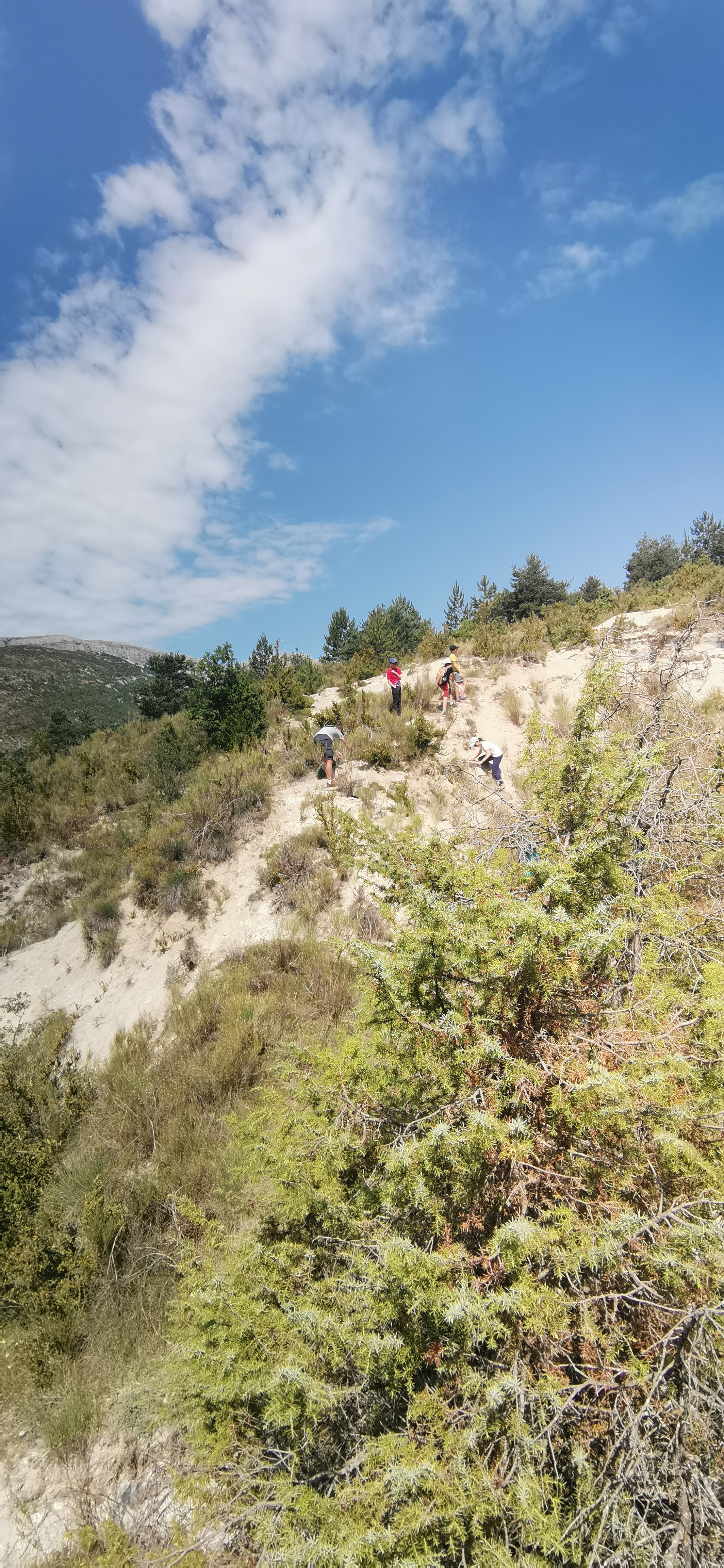 Ce matin, nous découvrons le laboratoire de paléontologie de Musiflore : un QG à l’abri de la chaleur, et équipé pour le projet de cette semaine. Pour nous introduire à la prospection fossilifère, nous descendons dans des marnes (un sol constitué d’argile et de calcaire) à proximité et dénichons de premières traces de bélemnites, ces animaux proches des calamars ayant vécu dans la région au début du Crétacé.