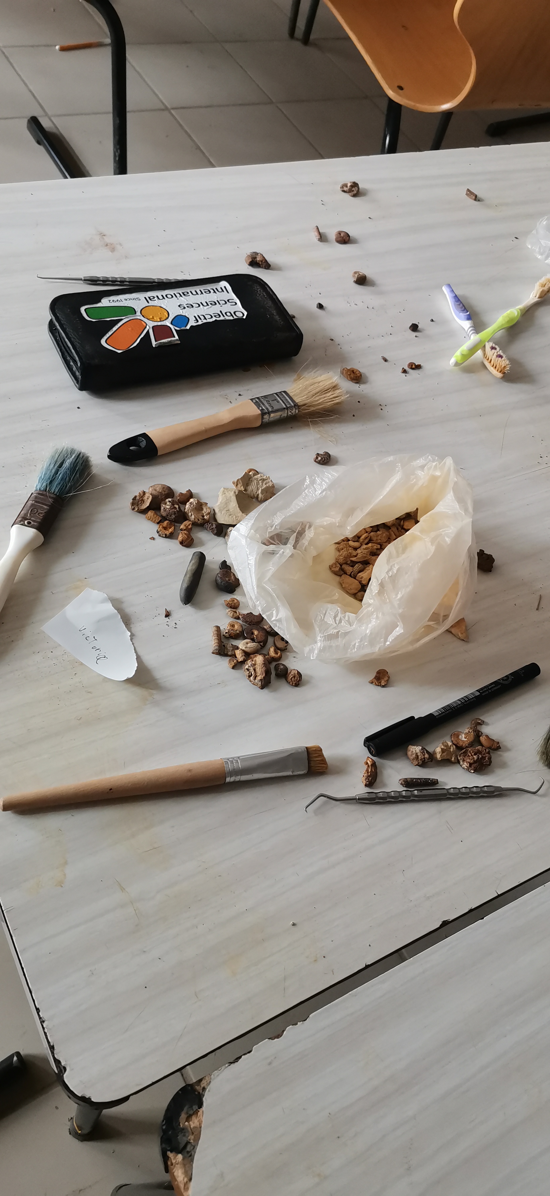 Après un petit en-cas sur place nous retournons nous reposer un peu dans les chambres à Musiflore avant d’entamer nos analyses de l’après midi. Au programme encore du nettoyage et de l’identification qui intéresse beaucoup cette semaine, le tout accompagné de quelques discussions intéressantes sur la paléo.