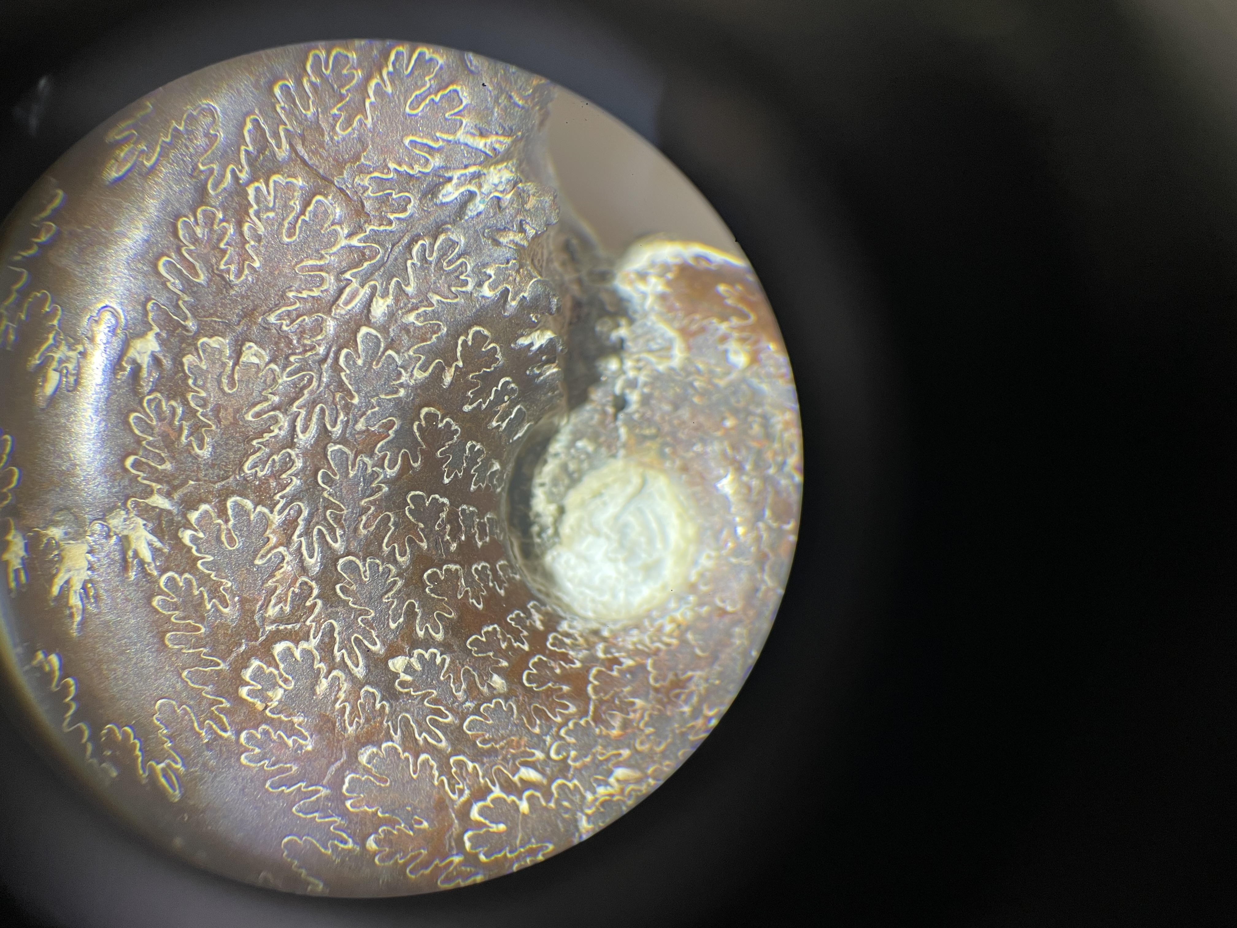 Le saviez vous ? Le dinosaure préféré de Florimond est le Therizinosaurus. Nous utilisons des clés de détermination pour tenter d’identifier nos ammonites, préalablement nettoyées à coups de brosse à dent, pinceau, et micro-burineur. A la loupe binoculaire, des détails incroyables sont révélés : les sutures séparant les loges de la coquille si caractéristiques des ammonites, en forme de feuille de persil, permettent de distinguer les espèces entre elles !