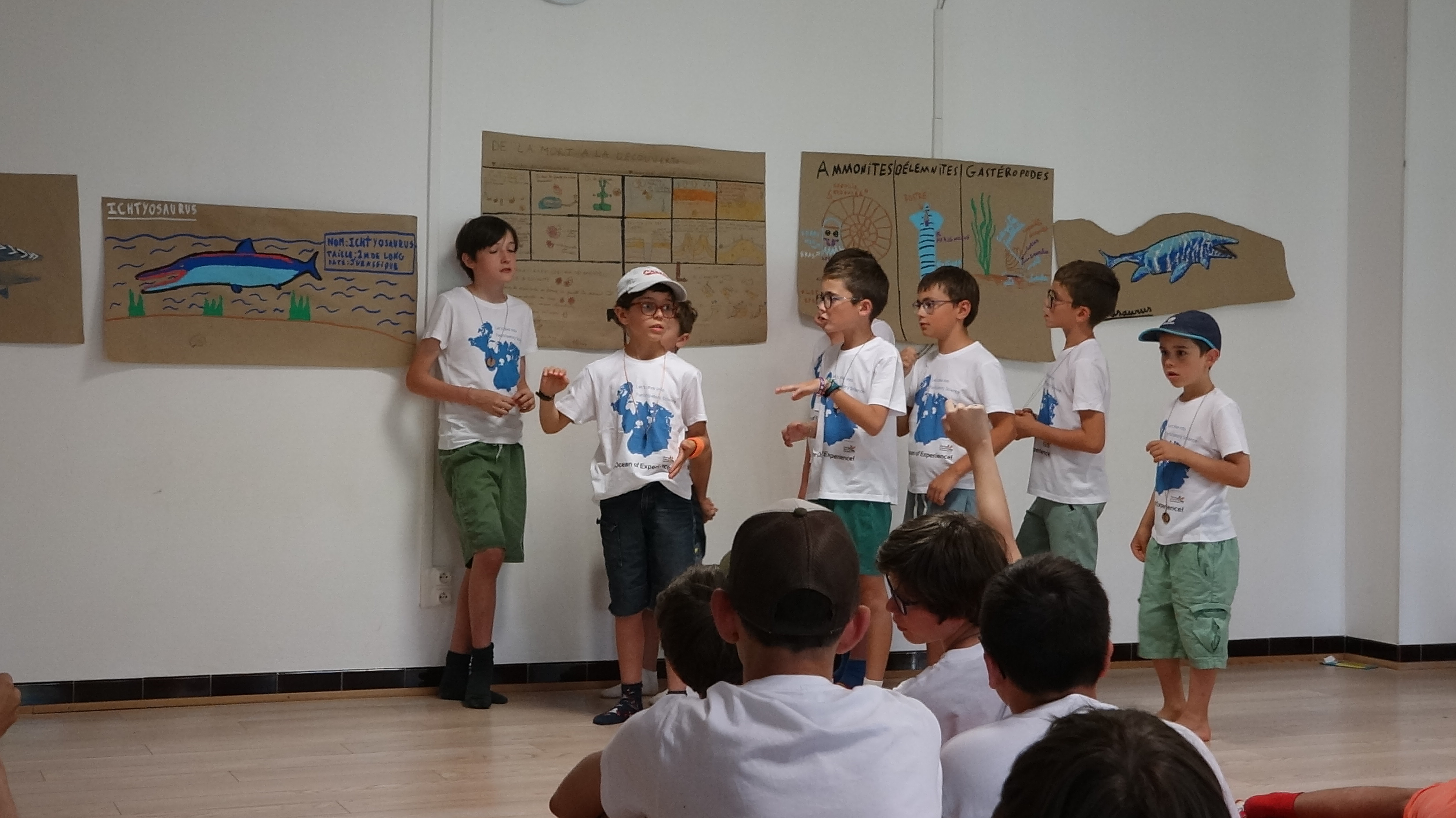 À 15h, les parents sont arrivés, c’est le moment de leur expliquer notre super séjour et de présenter aux arrivants un super mémory paléontologique et les différents fossiles trouvés durant ce séjour. Le jeu de société « Gobb’it » sur le thème des océans du mésozoïque est un véritable succès !Après cela, les enfants ont pu présenter l’objectif du séjour à l’oral en s’appuyant sur le beau poster de log dessiné hier.