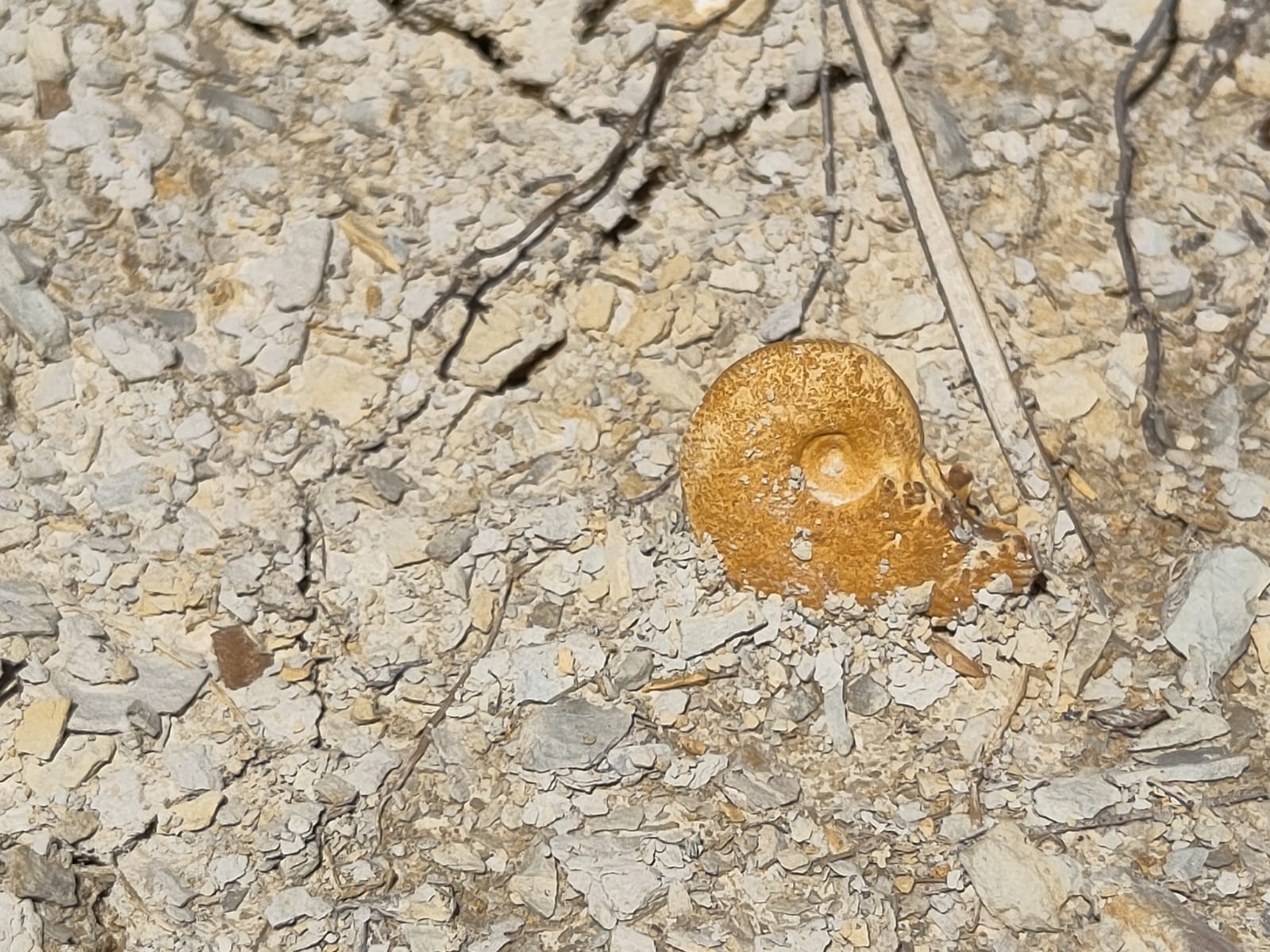 Là bas, de nombreuses ammonites, des parents des bélemnites à la coquille enroulée comme celle des nautiles actuels, sont trouvées par tout le monde. Elles sont de toutes tailles et beaucoup sont entières, elles sont magnifiques ! Certains trouvent également des traces étranges dans la roche : des ichnofossiles, nom donné aux fossiles correspondant à des empreintes laissées par l’animal de son vivant, il s’agit ici de terriers de vers marins. Victoria a même trouvé une bélemnite de grande taille, bien plus grosse que celles qui avaient été trouvées à Musiflore.