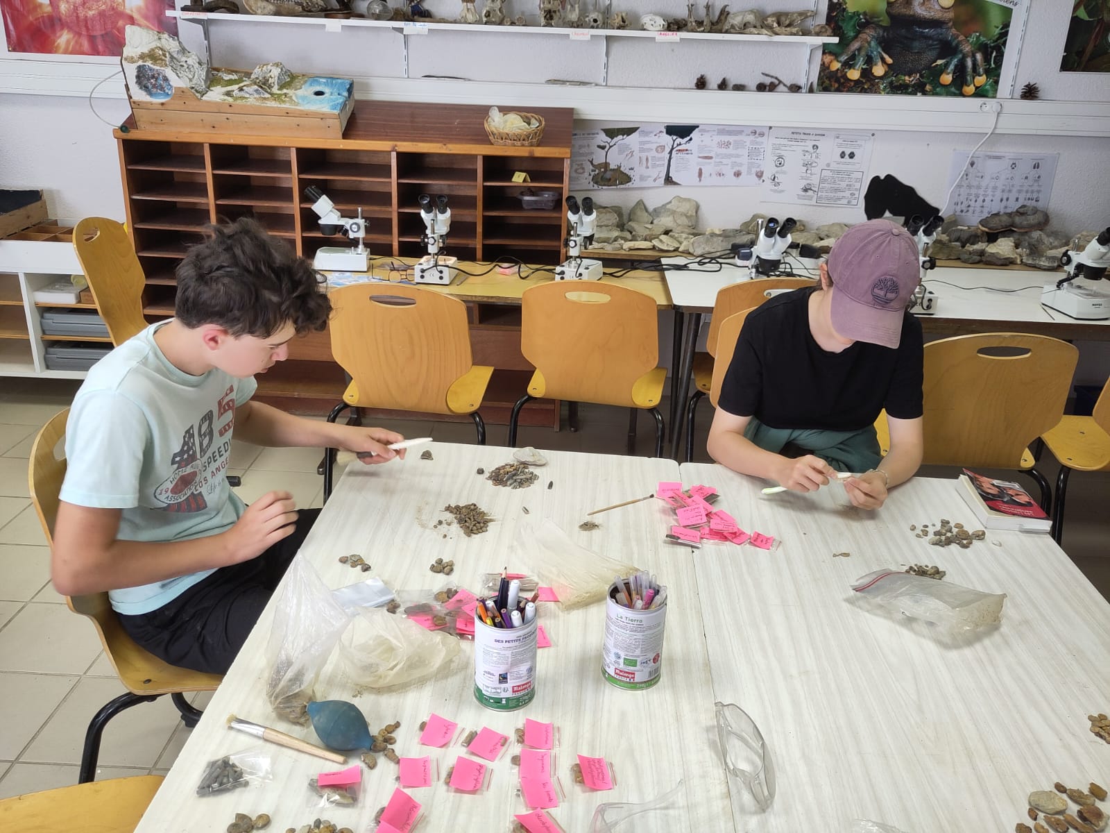 Une fois rentrés, après avoir mangé et s’être reposés, nous sommes retournés au Labo afin de trier, nettoyer et identifier les fossiles pour certains et jouer à des jeux sur les dinosaures, les fossiles et roches pour d’autres. Enfin nous avons commencer à travailler sur la restitution. De nombreuses idées ont étés évoquées, et de très bonnes ! Vous aurez donc le plaisir de les admirer samedi après-midi !