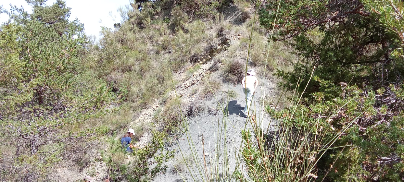 Nouvelle journée sur le terrain pour notre équipe paléo accompagné de l’équipe drône pour une matinée de fouille et d’initiation à la cartographie. A près un réveil à 7h nous avons sauté dans nos vêtements direction le minibus pour se rendre au Col du Portail. Cette fois-ci pas de marche, le site est à 5min à pied ! Nous prenons donc le petit déjeuner à côté du minibus et laissons le pique-nique à l’intérieur pour ne pas le porter. Nous démarrons la journée par un atelier commun de cartographie pour appréhender l’espace dans lequel nous allons travailler et pouvoir comparer avec le images drône. Ensuite, nous partons à la recherche des fossiles et nous montrons aux drônes ce qu’il faut chercher.