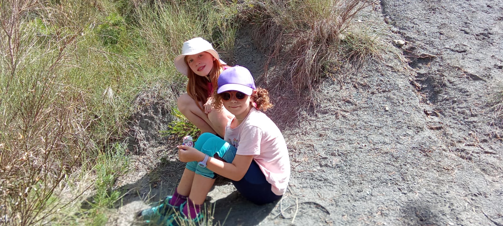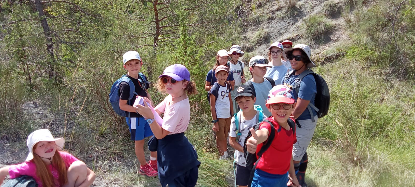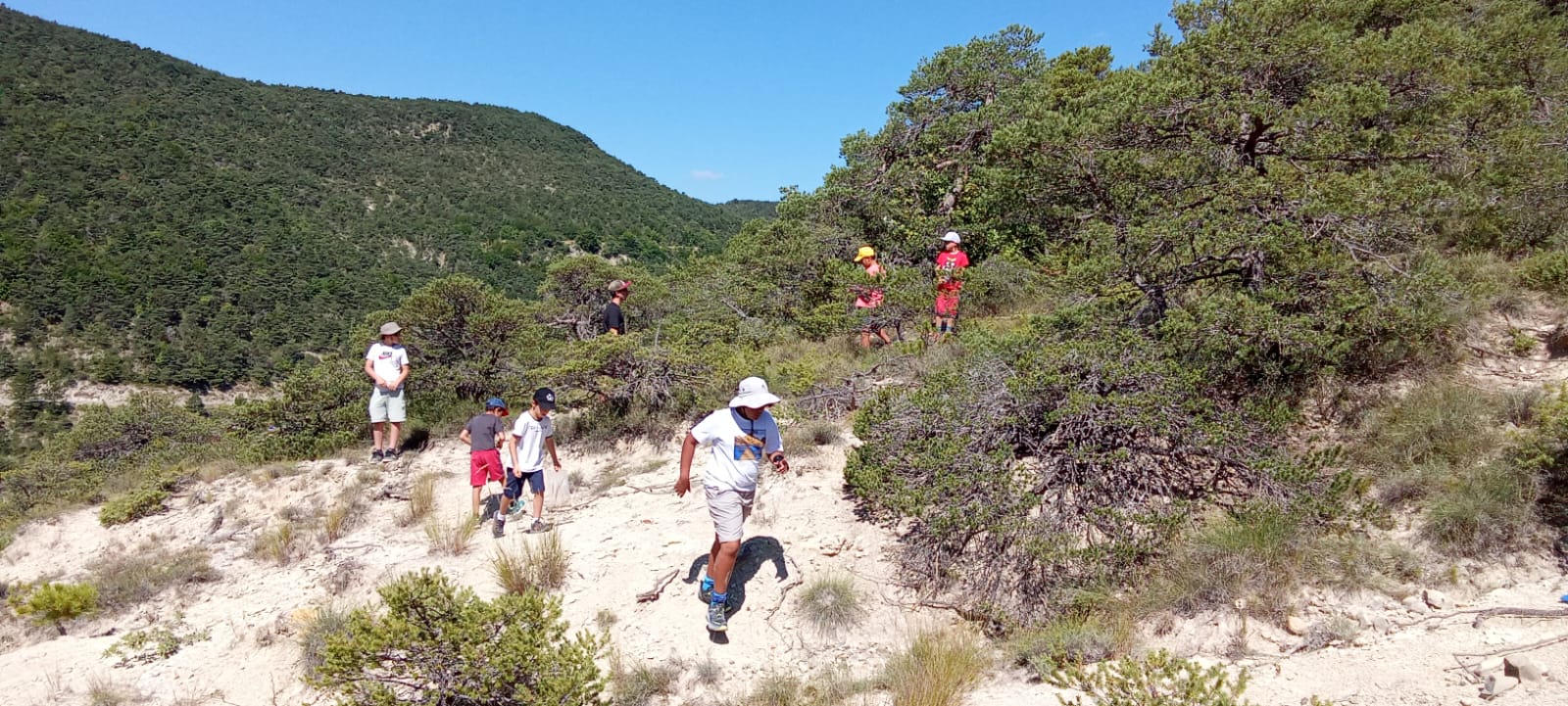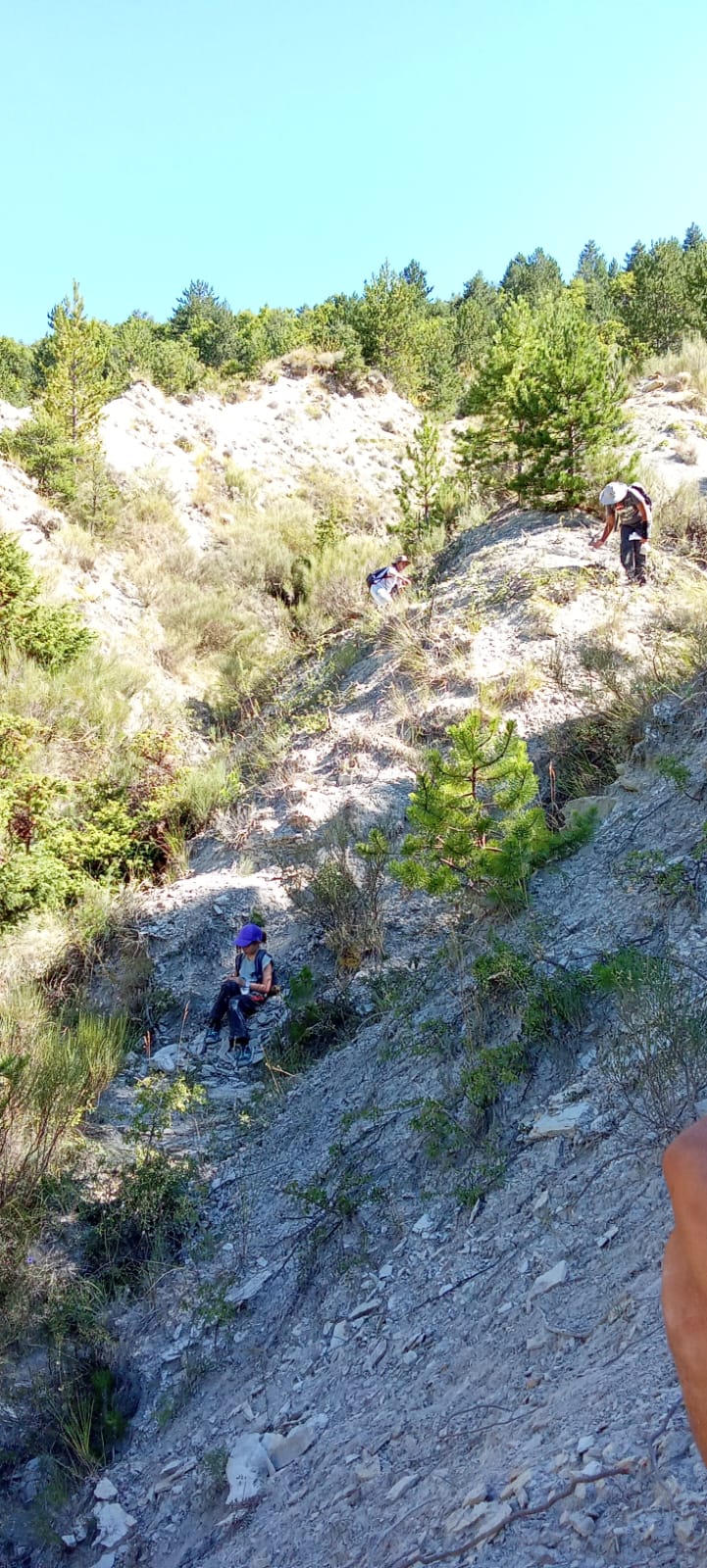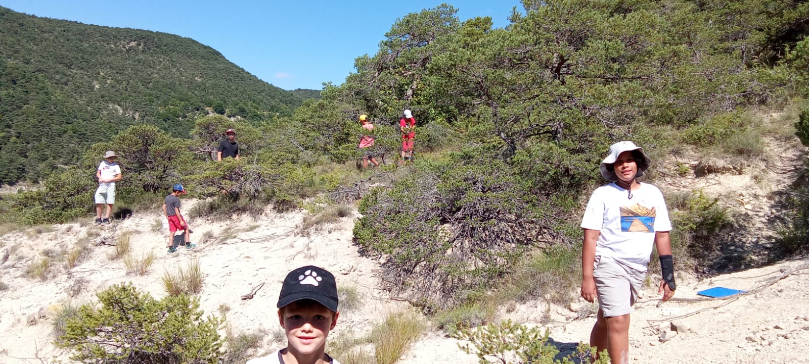 La journée commence par un bon petit-déjeuner pour faire le plein d’énergie. Après un passage par les chambres pour se préparer, direction la prairie pour le temps de forum. Au programme : la charte des règles de vie, il s’agit d’un temps d’échange sur les règles à mettre en place afin que la semaine se passe bien pour tous le monde et que le groupe se porte bien. Pour cela nous avons fait un petit jeu de mimes. Ensuite nous sommes parti en axctivité scientifique. Le matin était destiné à une première approche directement sur le terrain pour découvrir l’environnement dans lequel nous allons travailler, les reliefs et paysages et chercher quelques fossils.